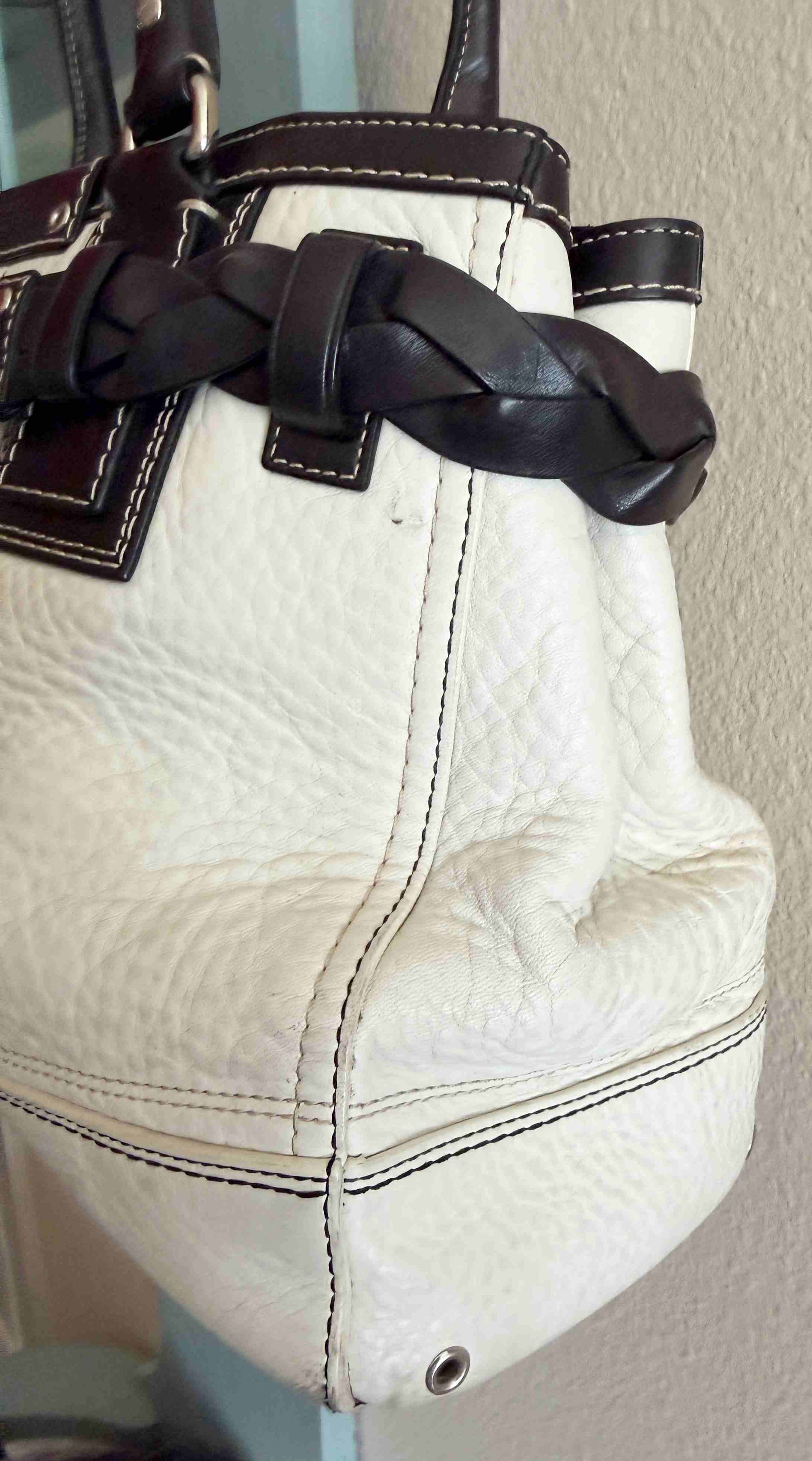 Designer Coach Handbag White Black Leather